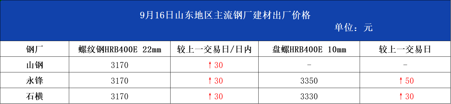 • 9月16日山东地区主流钢厂建材出厂价格