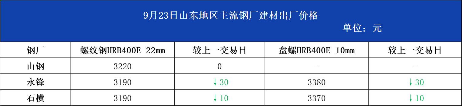 • 9月23日山东地区主流钢厂建材出厂价格