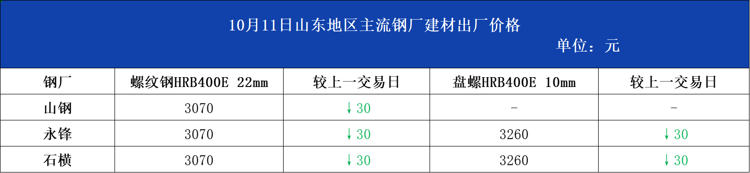 • 10月21日(14:00)山东地区主流钢厂建材出厂价格