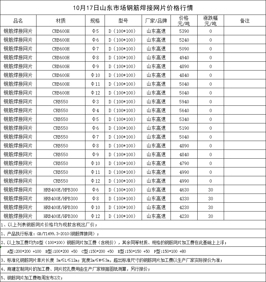 - 10月17日山东市场钢筋焊接网片价格行情2025/10/17
