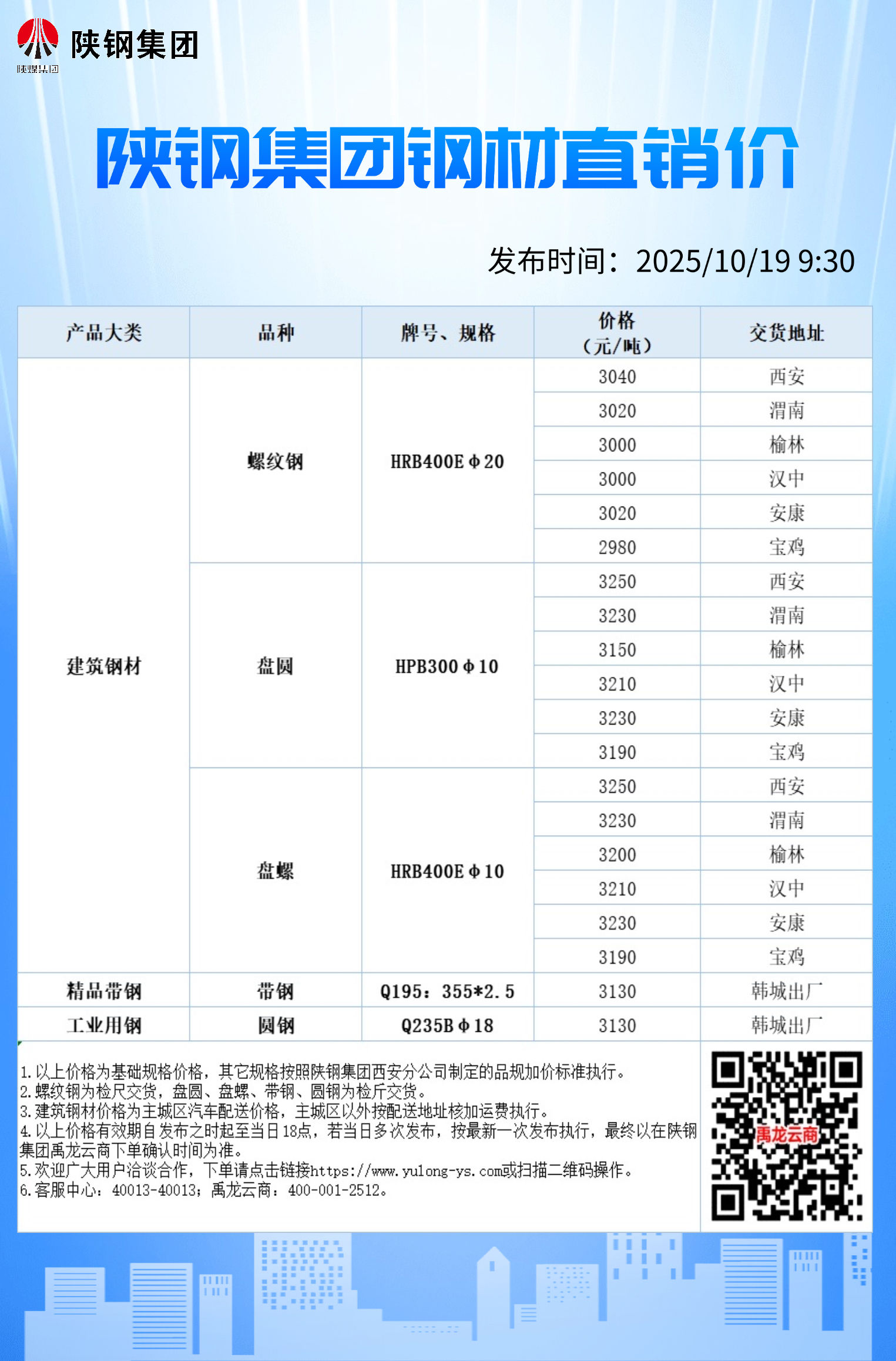 • 10月19-20日山西晋钢建筑钢材订货价格