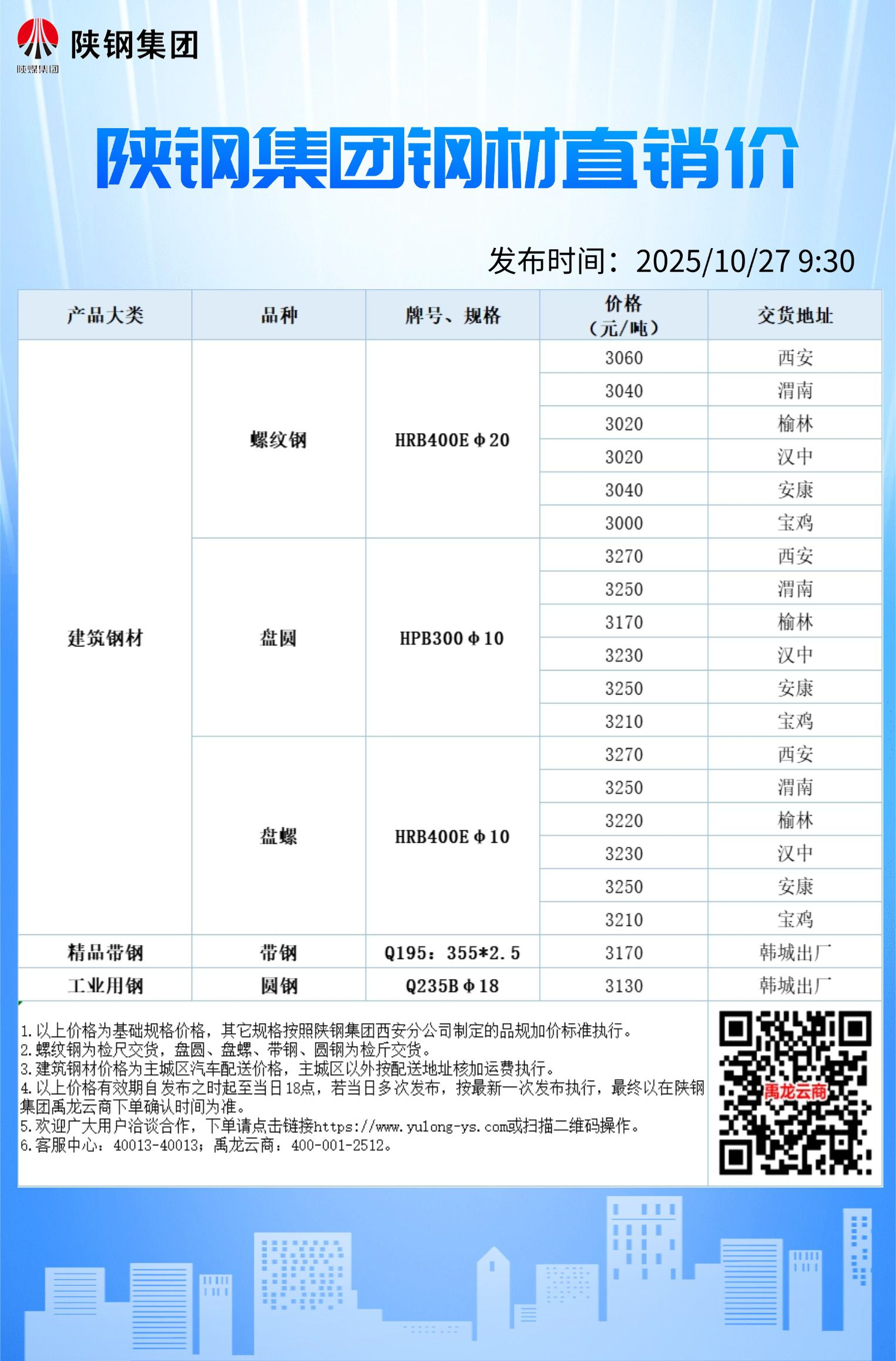 10月27日陕钢集团钢材直销价格信息
