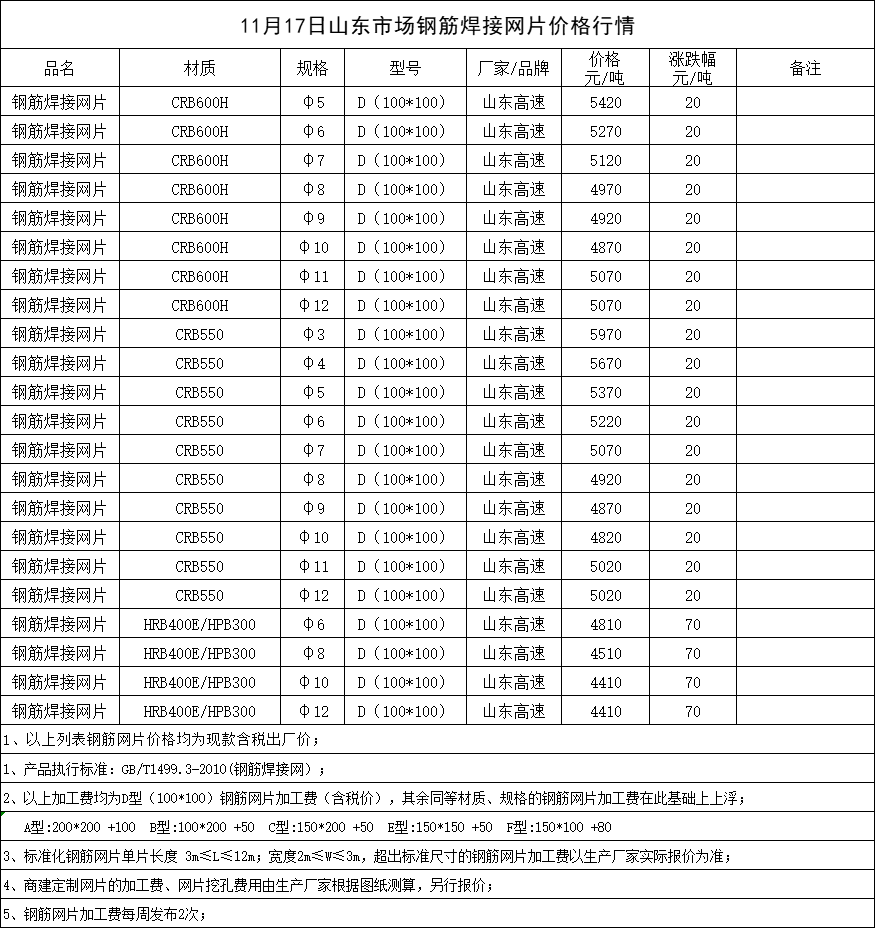 - 11月17日山东市场钢筋焊接网片价格行情2025/11/17