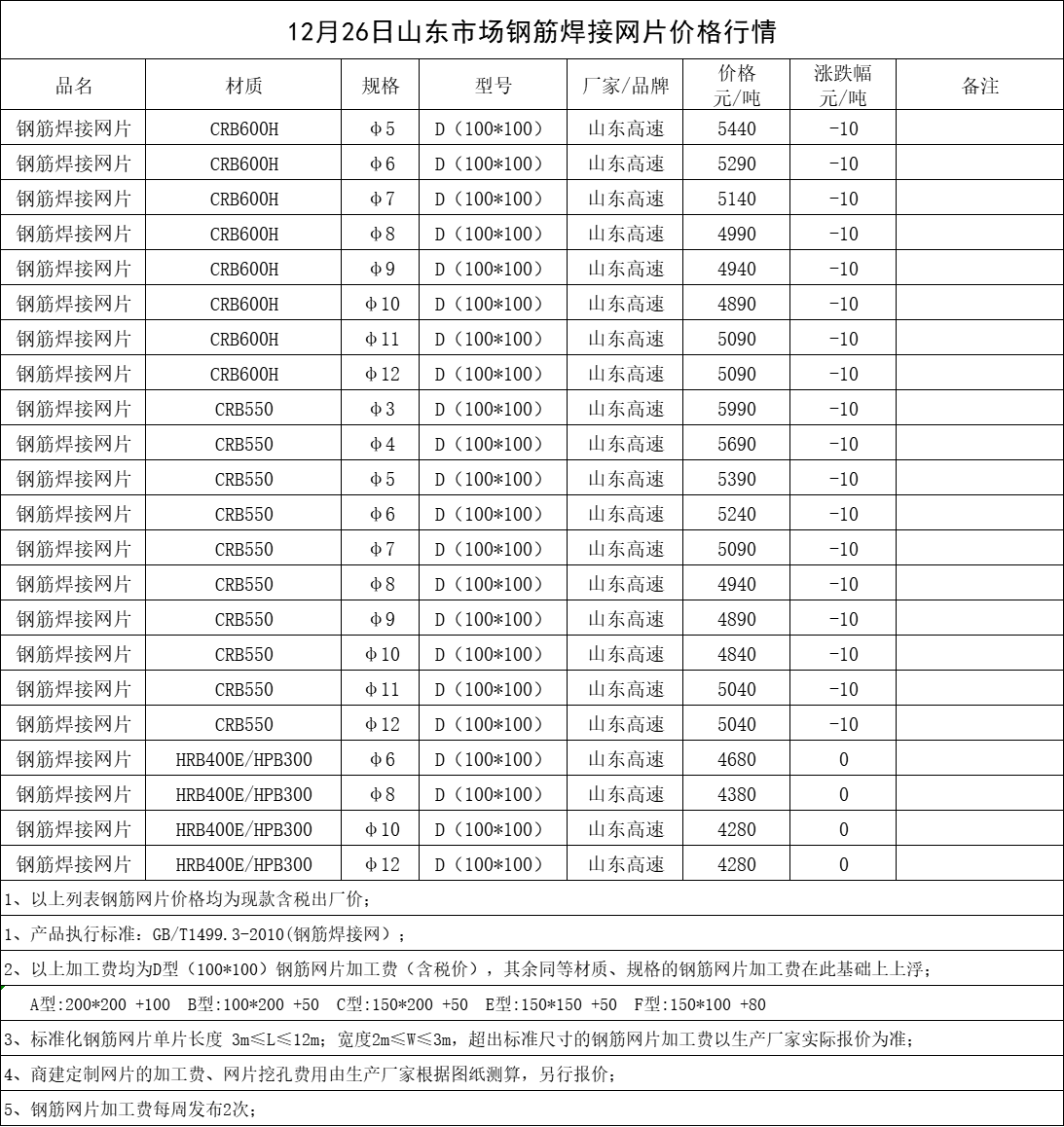 12月26日山东市场钢筋焊接网片价格行情