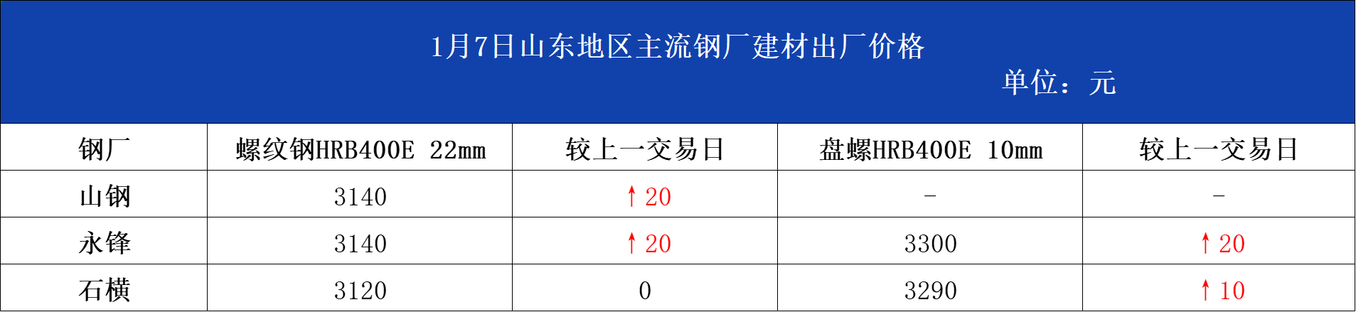 • 1月7日山东地区主流钢厂建材出厂价格