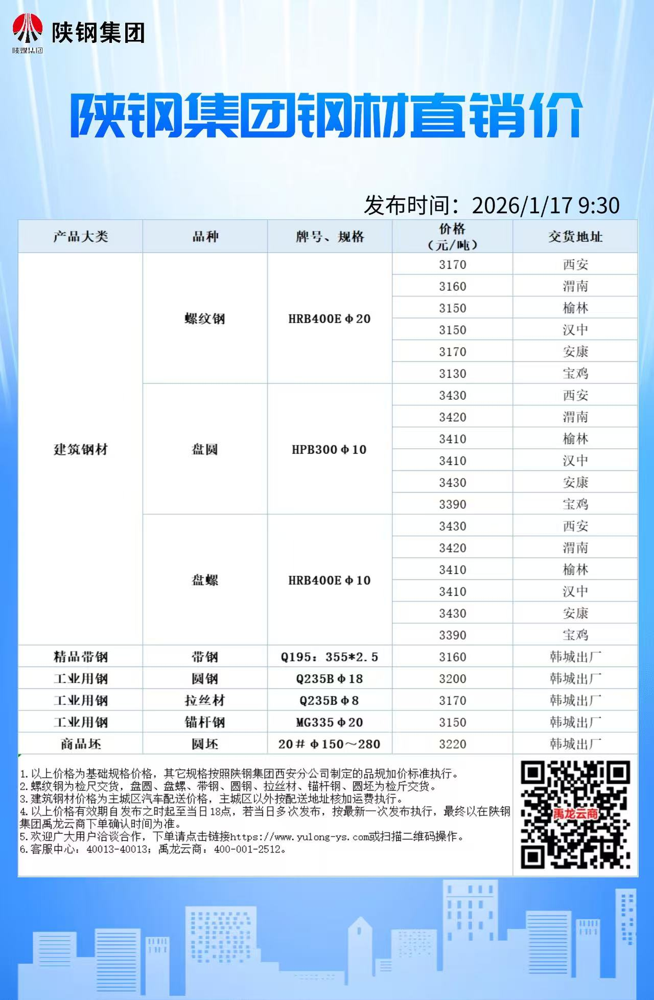 1月17日陕钢集团钢材直销价格信息