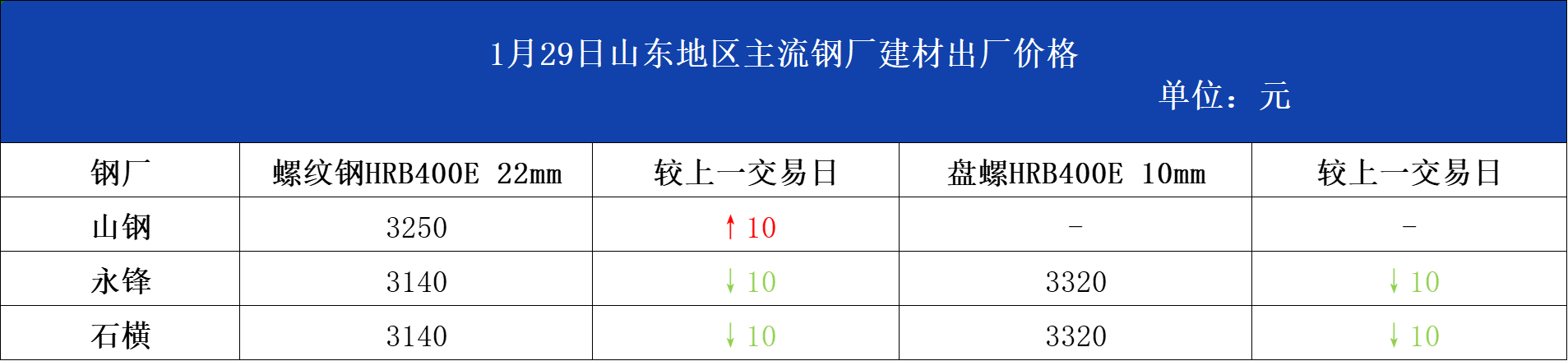 • 1月29日山东地区主流钢厂建材出厂价格