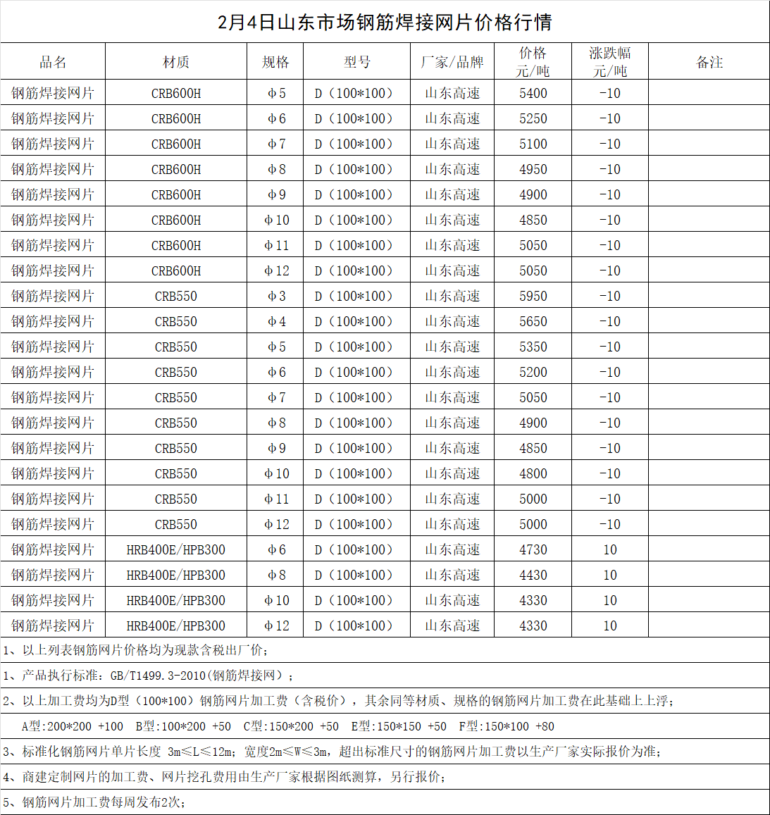 2月4日山东市场钢筋焊接网片价格行情