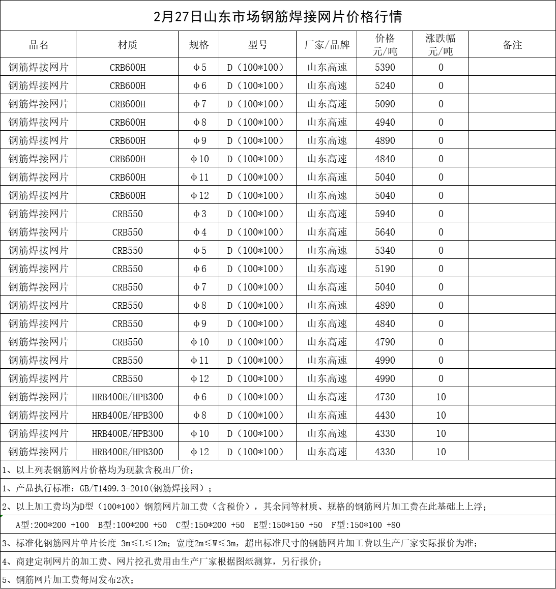 2月27日山东市场钢筋焊接网片价格行情