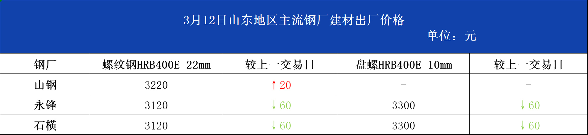 • 3月12日山东地区主流钢厂建材出厂价格