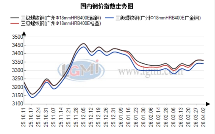 今日期螺盘面趋弱震荡,广东市场主流报价持稳,个别商家为促进出货存在小幅优惠。从成交表现看,整体成交量依旧较差,下游采购意愿偏低。短期来看,若盘面维持弱势运行格局,叠加后续阴雨天气影响,终端需求释放将进一步受阻。在供给端维持较高水平的背景下,市场库存将逐步积累,对现货价格形成压制。综合判断,预计明日广州建材价格将延续弱稳运行态势。