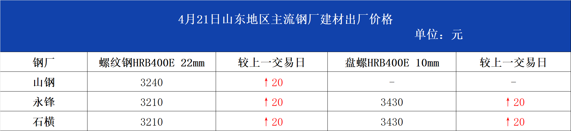 • 4月21日山东地区主流钢厂建材出厂价格